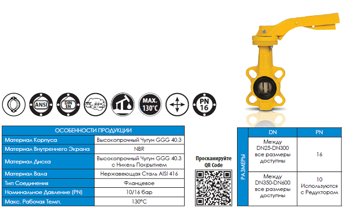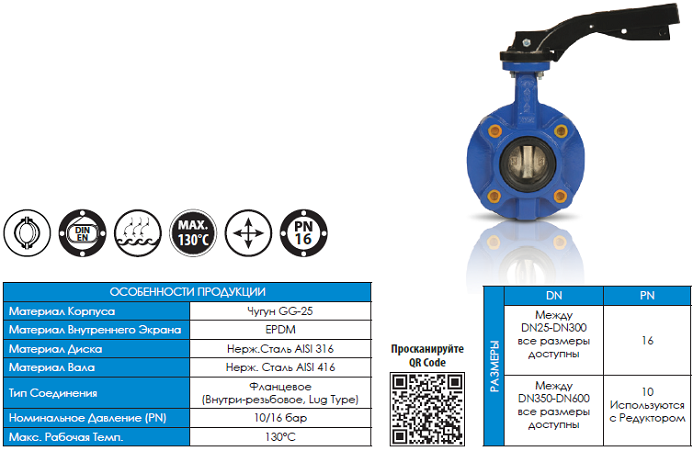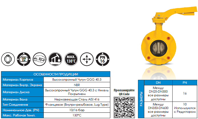 - DN25-300 для дроселльных заслонок