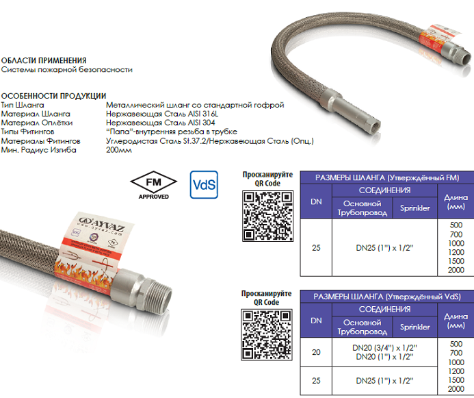 ШЛАНГИ SPRINKLER (УТВЕРЖДЁННЫЙ FМ, VdS)