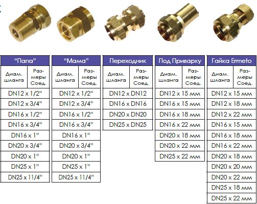 Типы Фитингов “Мама-Мама“,”Папа–Папа”, Под Приварку, Тип Нажатия